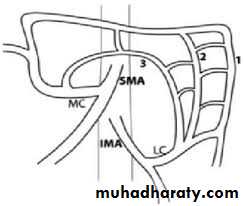 2. Rt. Colic flexure 3. ascending colon