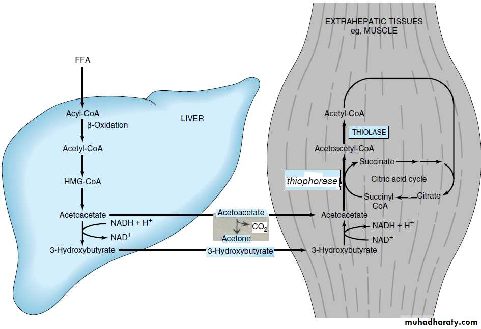 the liver is equipped with an active enzymatic mechanism for the production of ketone bodies but it cannot be metabolized further these ketone bodies ,however these ketone bodies can be used as energy source by skeletal muscles, heart muscles and to limited extent by brain.(that mean the ketone bodies just like the lactate are waste product to the liver but energy source to other organs).