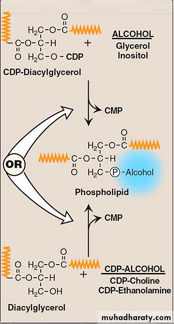 SYNTHESIS OF THE PHOSPHOLIPIDSThere are two types of phospholipids either contain the glycerol called { glycerol phospholipids } or do not contain glycerol that called { sphingophospholipids } .