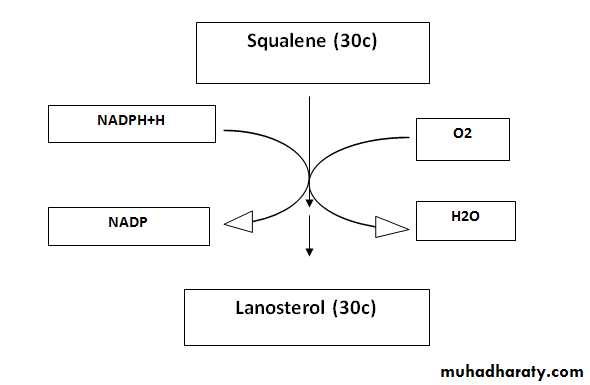 6 isoprenoid units condense to form squalene:4- formation of lanosterol (30c)
