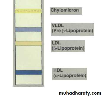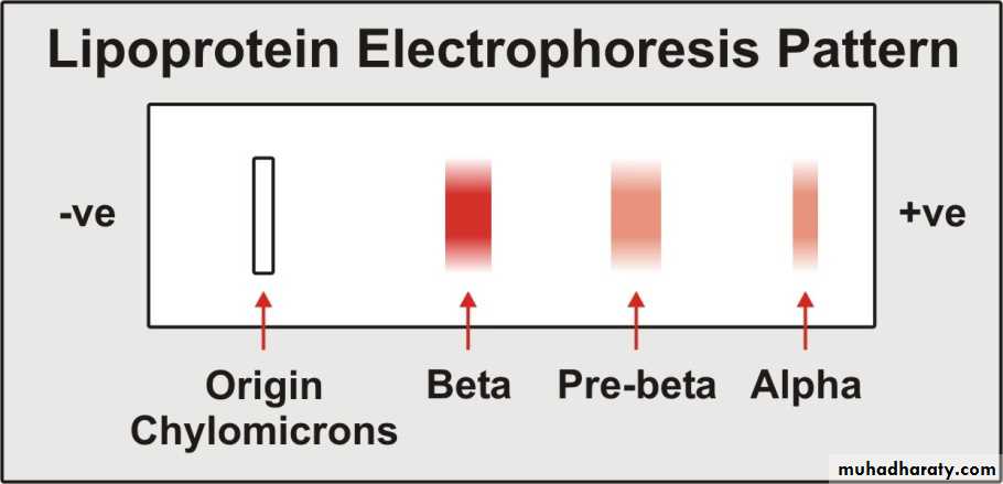 Numerous types of lipoproteins are present in the plasma; however, we have two principle modes of classification:- Electrophoresis: Depending on the charge of the lipoproteins.