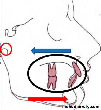 • Forwards movement of the mandible due to small additional growth at the condyle and remodelling of the glenoid fossa.