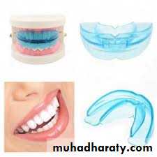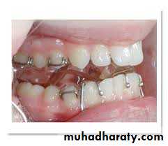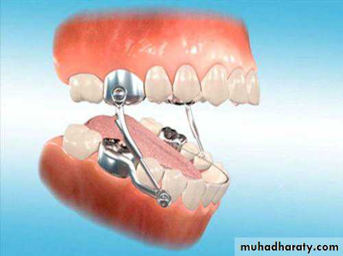Once the overjet is corrected and due to the tendency of the original growth pattern to re-establish itself following treatment; wear of the appliance should be continued on a part-time basis to retain the sagittal correction and allow occlusal settling (to close the transient lateral open bite that happen at the end of treatment). This can include part-time wear of a cut-down functional appliance or a removable appliance with an inclined anterior bite plane.7) Exra Oral Devices