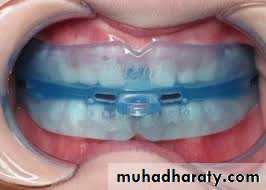 as well as encouraging forwards posture of the mandible. The treatment philosophy is based upon full-time wear, but the bulk and fragility of the appliance can make compliance difficult.