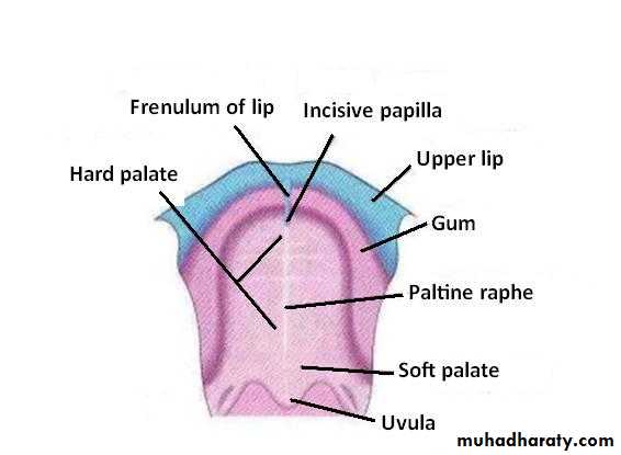 2. The posterior portion of the secondary palate forms the soft palate, which contains no bony or cartilagenous elements. Skeletal muscles in the soft palate are derived from pharyngeal arches I & IV
