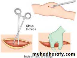 • If pus is not encountered, further deepening of surgical site is achieved with sinus forceps (to avoid damage to vital structures).