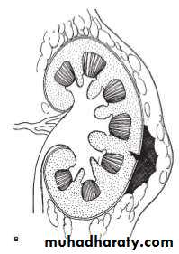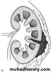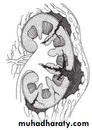– the kidney moves upward or downward, causing sudden stretch on the renal pedicle and sometimes complete or partial avulsion