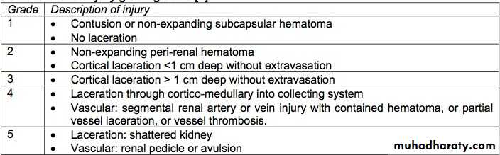 • grade 1-4 blunt renal trauma, stable patients should be managed conservatively with