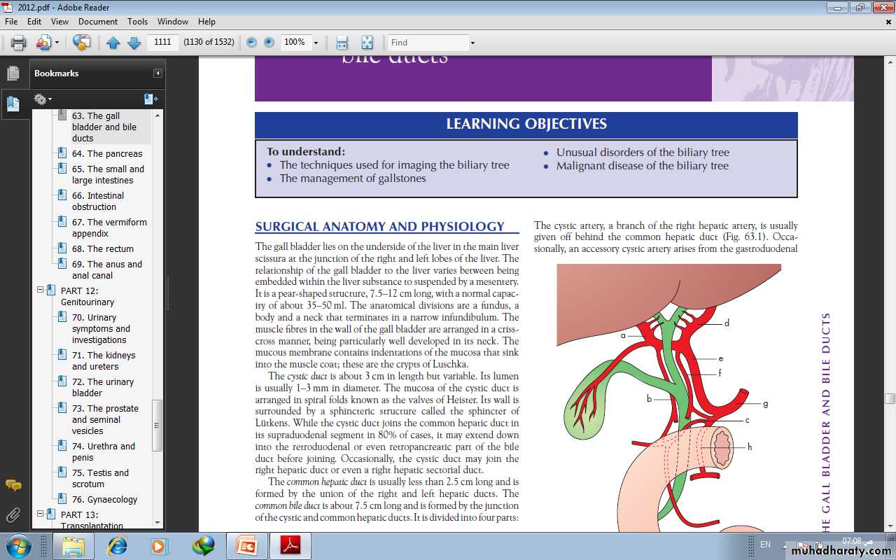 ManagementIt is essential to determine whether the jaundice is due to liverdisease, disease within the duct, such as sclerosing cholangitis, orobstruction of the biliary tree. Ultrasound scanning, liver functiontests, liver biopsy and MRI or ERCP will delineate the nature of the obstruction.The patient may be ill. Pus may be present within the biliarytree, and liver abscesses may develop. Full supportive measures are required with1- rehydration,2- correction of clotting abnormalities3- treatment with appropriate broad-spectrum antibiotics.Once the patient has been resuscitated, relief of the obstruction is essential. ERCP with a sphincterotomy, removal of the stones using a Dormia basket or the placement of a stent if stone removal is not possible. If this technique fails, percutaneous transhepatic Cholangiography can be performed to provide drainage and subsequent percutaneous choledochoscopy. Surgery, in the form of choledochotomy, is now rarely used .