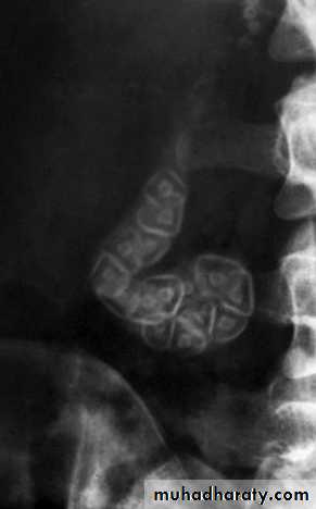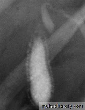 THE CHOLECYSTOSES (CHOLESTEROSIS,POLYPOSIS, ADENOMYOMATOSIS ANDCHOLECYSTITIS GLANDULARISPROLIFERANS)This is a not uncommon group of conditions affecting the gallbladder, in which there are chronic inflammatory changes withhyperplasia of all tissue elements.Cholesterosis (‘strawberry gall bladder’)In the fresh state, the interior of the gall bladder looks somethinglike a strawberryCholesterol polyposis of the gall bladderCholecystography shows negative shadows in a functioning gallbladder, or there is a well-defined polyp present on ultrasound. surgery is advised only if they change in size or are longerthan 1 cm.