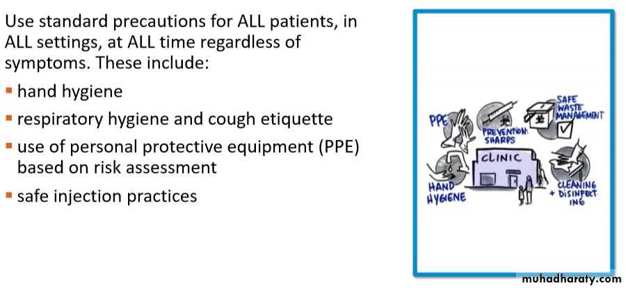 • Washing hands regularly with soap and water or alcohol-based hand rub.