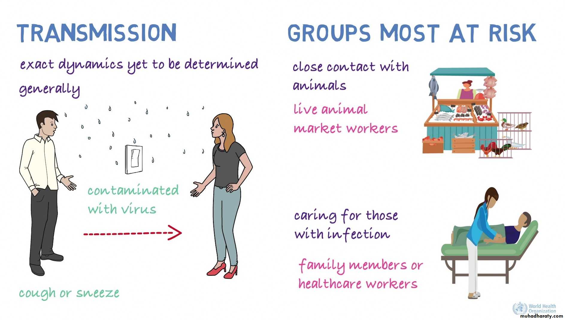 How is it transmitted? The exact dynamics of how the virus is transmitted is yet to be determined. In general, respiratory viruses are usually transmitted through droplets created when an infected person coughs or sneezes or, through something that has been contaminated with the virus. People most at risk of infection from the novel coronavirus are those in close contact with animals such as live animal market workers and those who are caring for people infected with the virus such as family members or healthcare workers.