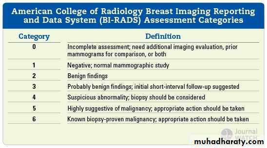 1-microcalcification2-irregular mass with microcalcification 3- structural distortion with microcalcification 4- asymmetry with microcalcification 5- more than 5 microcalcification lcm2 6-indistict margin