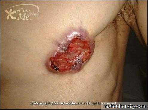 Treatment is by extended mastectomy with lymph node clearance.