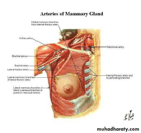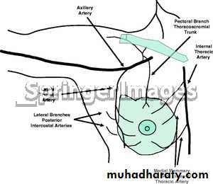 Lymph drain 85% to the axillary L.N and 15% to the internal mammary L.Narrange in the fallowing group