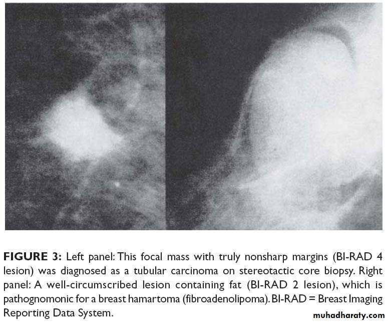 Breast cancer tend to be more radio dense than the normal tissueCriteria that increase chance of cancer in patient without palpable mass appear in the mammography