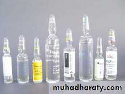 B. Parenteral Routes 1-Intravenous injections:Intravenous injections might be applied to the cubital, basilic and cephalic veins.Advantages: Immediate action takes place , This route is preferred in emergency situations, This route is preferred for unconscious patients., Titration of dose is possible., Large volume of fluids might be injected by this route, Diluted irritant might be injected. , Absorption is not required.,No first pass effect takes place., Blood plasma or fluids might be injected.Disadvantages:There is no retreat. , This method is more risky. , suitable for insoluble prSepsis-Infection might occur. , Phlebitis(Inflammation of the blood vessel) might occur., Infiltration of surrounding tissues might result., This method is not suitable for oily preparations. ,This method is not eparations2-Intramuscular injection: Drugs may be injected into the arm (deltoid), thigh (vastus lateralis) or buttocks (gluteus maximus). The volume used is 3 ml.Advantages:Absorption is rapid than subcutaneous route., Oily preparations can be used. ,Slow releasing drugs can be given by this route.DisadvantagesSome time painful, Not suitable for irritant drugs., Using this route might cause nerve or vein damage.3. Subcutaneous injection: Some drugs, notably insulin, are routinely administered SC. Drug absorption is generally slower SC than IM, due to poorer vascularity. Absorption can be facilitated by heat, massage or vasodilators. It can be slowed by co-administration of vasoconstrictors, a practice commonly used to prolong the local action of local anesthetics. As above, arm > thigh.4- Intraperitoneal injection: is the injection of a substance into the peritoneum (body cavity). In general , it is rarely used in human (fearing from peritonitis), it is preferred when large amounts of replacement fluids are needed, or when low blood pressure or other problems prevent the use of a suitable blood vessel for intravenous injection5- Intradermal injection: is injection of drug in the dermis, it is one of the routes used for administration vaccins and for the test of allergy.