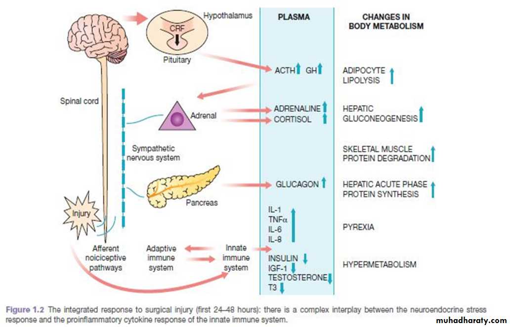 As a consequence of modern understanding of the metabolic response to injury, elective surgical practice seeks to reduce the need for a homeostatic response by minimising the primary insult (minimal access surgery and ‘stress-free’ perioperative care).