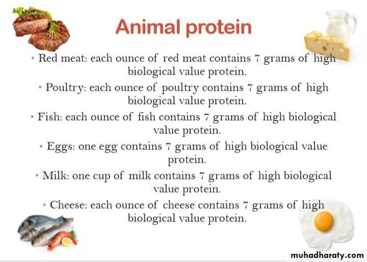 • Animal protein:meat, poultry, fish ,eggs, milk and cheese.