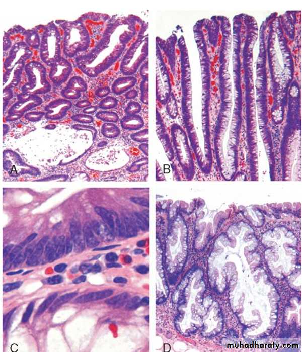 inflammatory infiltrates, crypt abscessesepithelial metaplasia