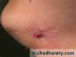 bone), in the canine region . A hemostat is then inserted, which is placed at the depth of the purulent accumulation until it comes into contact with bone , while the index finger of the