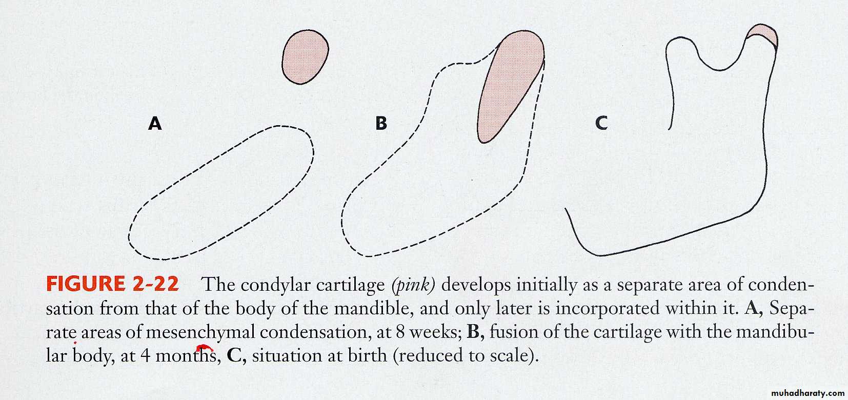 Mandible forms by intramembranous bone formation just lateral to Meckel’s cartilageCondylar cartilage of mandible