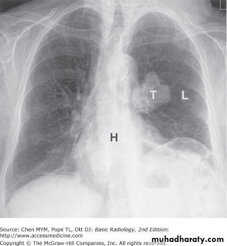 Conventional radiography refers to plain radiographs that are generated when x-ray film is exposed to ionizing radiation and developed by photochemical process. During development, the metallic silver on the x-ray film is precipitated, rendering the latent image black. The amount of blackening on the film is proportional to the amount of x-ray radiation exposure. Plain radiography relies on natural and physical contrast based on the density of material through which the x-ray radiation must pass. Thus, gas, fat, soft tissue, and bone produce black, gray-black, gray, and white radiographic images, respectively, on filmAlthough other image modalities such as CT, ultrasonography, and MR imaging are being used with increasing frequency to replace plain radiographs, conventional radiography remains a major modality in the evaluation of chest, breast, bone, and abdominal diseases