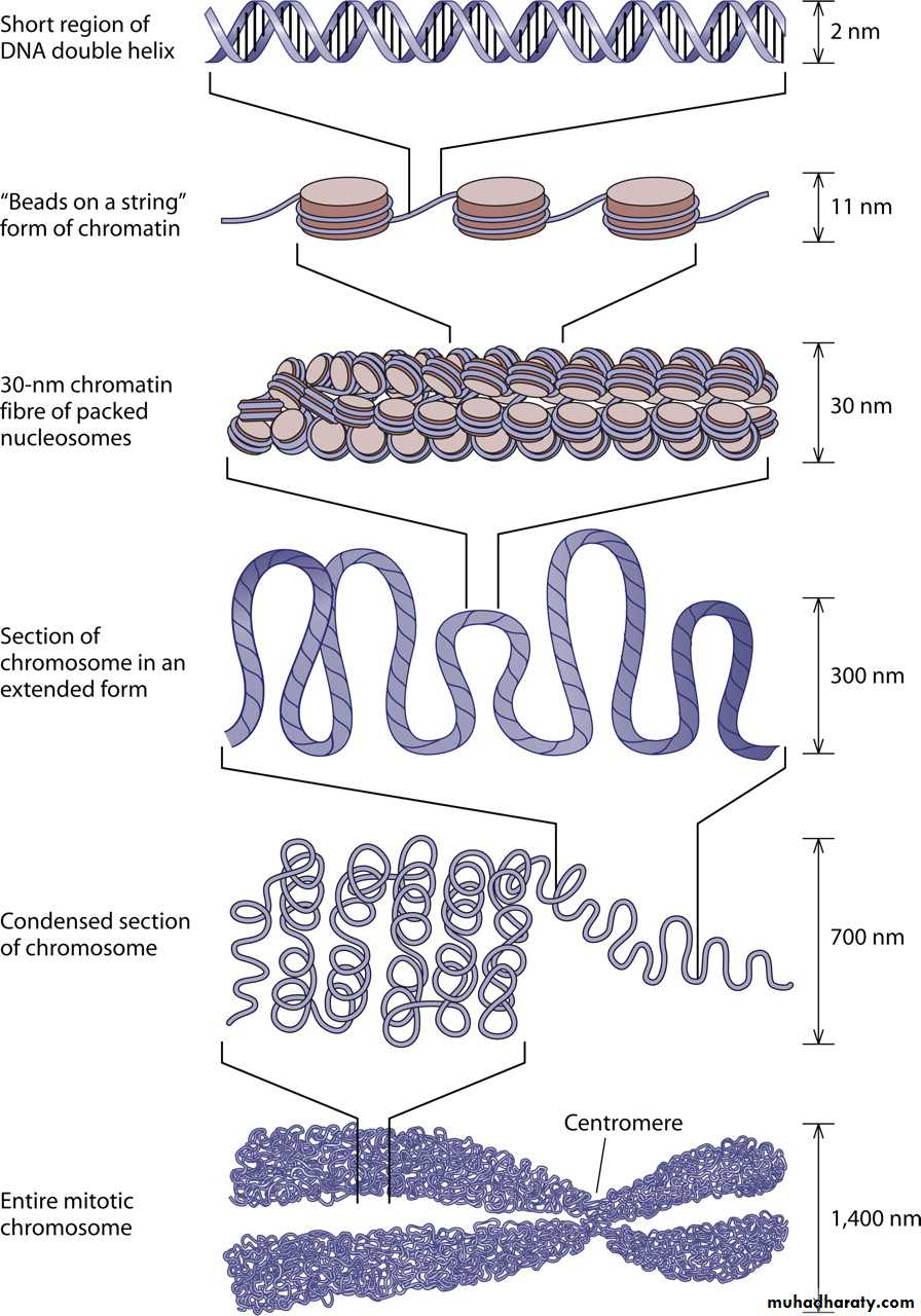 So the chromatin is a lower order of DNA organization, while chromosomes are the higher order of DNA organization.