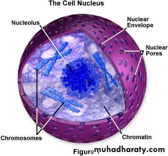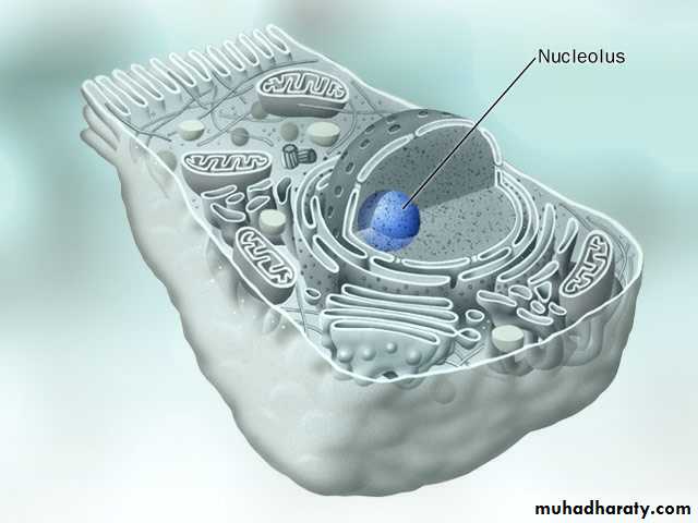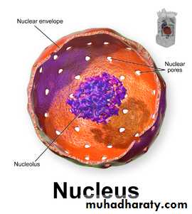 The main distinguishing feature of the eukaryotic cell is the nucleus,, it has a diameter of about 5 µm, depending on cell type, Nucleus shape mostly depends on the shape of cells. Basic shape is spherical, but it may be oval, flattened, irregular or fragmented.