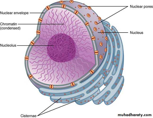 • 1- nuclear envelope. 2-nucleoplasm. 3-chromatin. 4-nucleolus.Nuclear envelope: