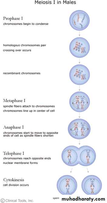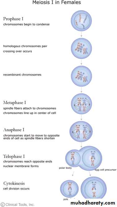 2-Prophase I: is complicated and includes many of events that distinguish meiosis from mitosis ,begins as the chromatin strands coil and condense, causing them to become visible as chromosomes.