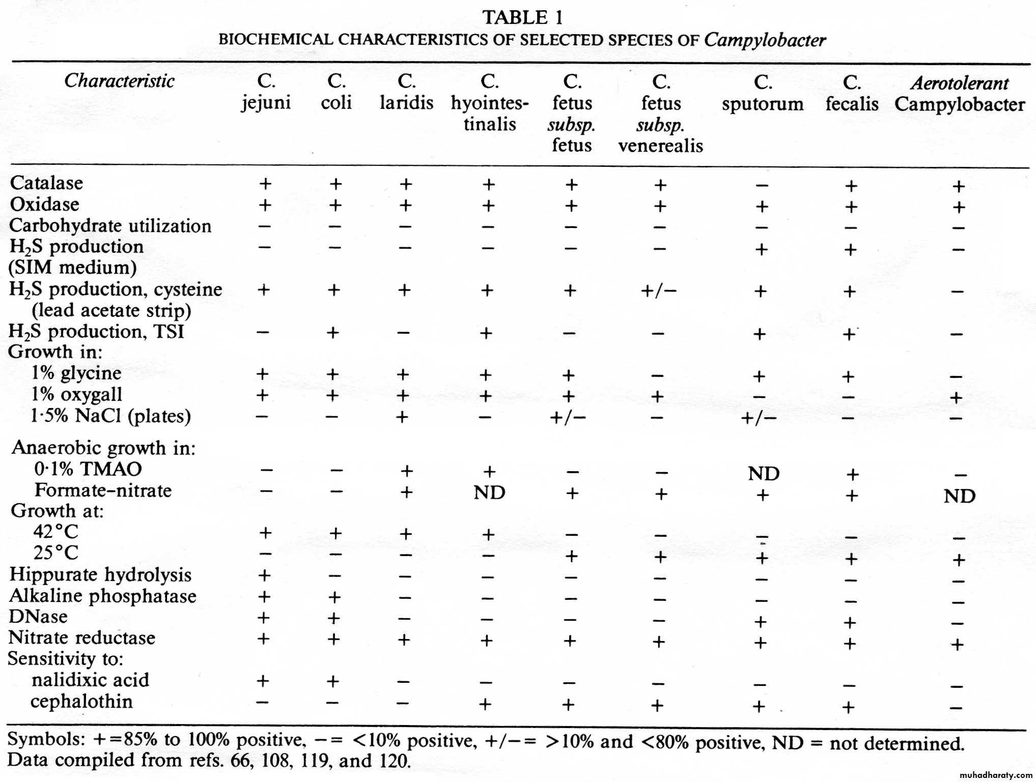 Hippurate test +, hydrogen sulfide production, and antimicrobial susceptibilities can be used for further identification of species.
