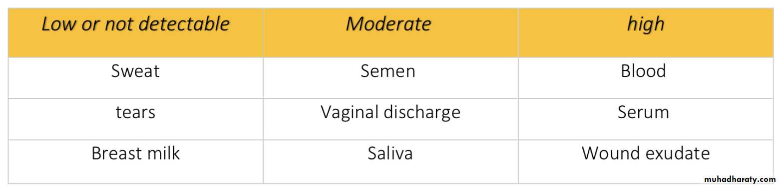 Concentration of Hepatitis B Virus in Various Body Fluids