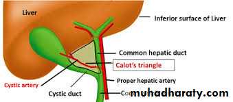 Calots traingle is the area bounded superiorly by:the inferior surface of the liver, laterally by the cystic duct and the medial border of the gallbladder and medially by the common hepatic duct.