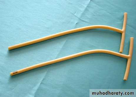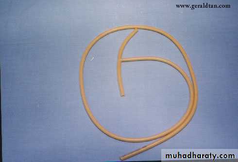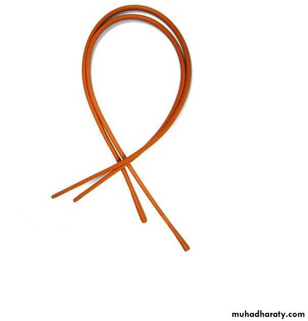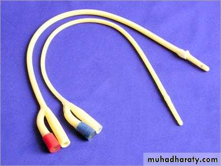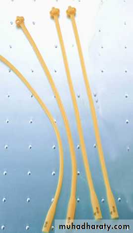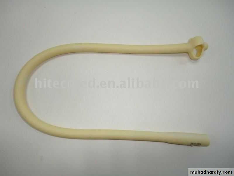 Self retaining catheter, made of rubber, the tip is bulbous & winged.