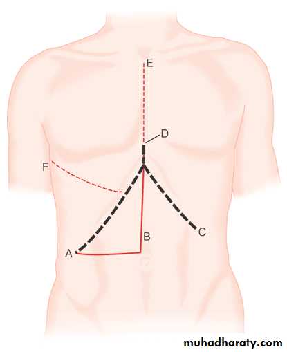 (Kokher’s incision)The right incision used for hepatobiliary surgery