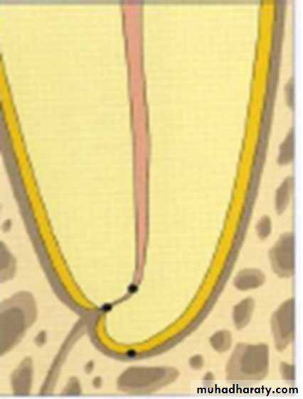 • When working length is made short of apical constriction it may cause persistent discomfort because of incomplete cleaning and underfilling. Apical leakage may occur into uncleaned and unfilled space short of apical constriction. It may support continued existence of viable bacteria and contributes to the periradicular lesion and thus poor success rate.