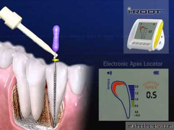 With apex locator the working length is determined by comparing the electrical resistance of the periodontal membrane with that of gingiva surrounding the tooth, both of which should be similar