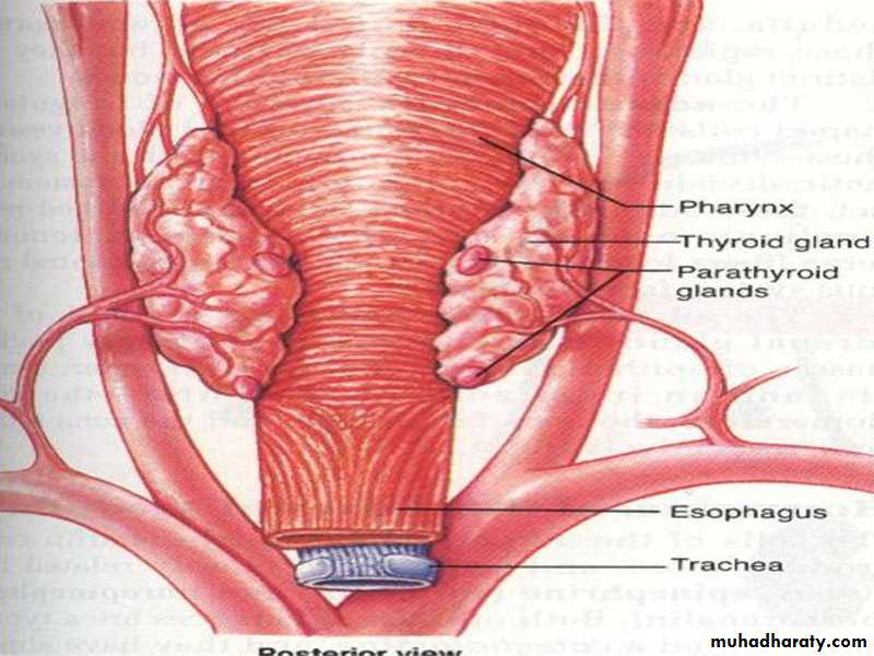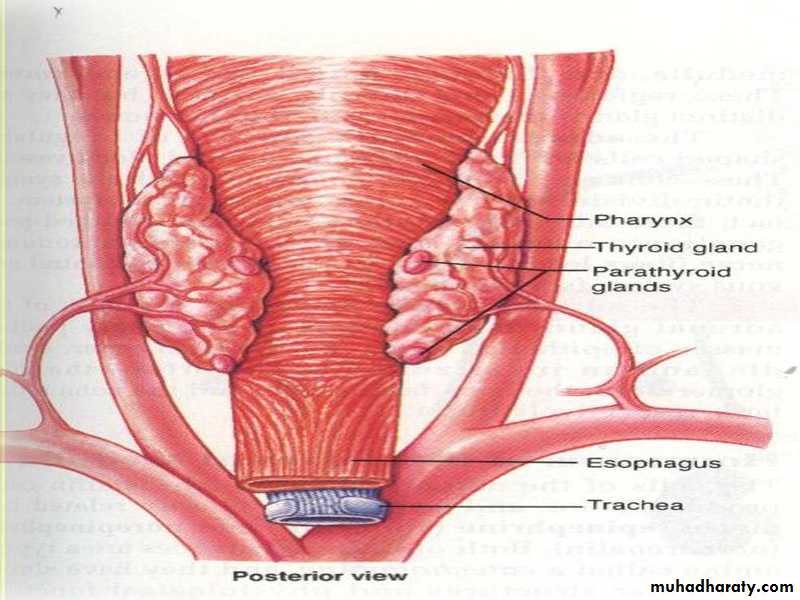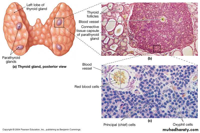 Normally there are 4 parathyroid glands in humans , they are located immediately behind the thyroid gland and behind each of the upper &each of the lower poles of the thyroid.The parathyroid gland contains mainly chief cells which secret PTH .PTH is a polypeptide with 84 amino acids .