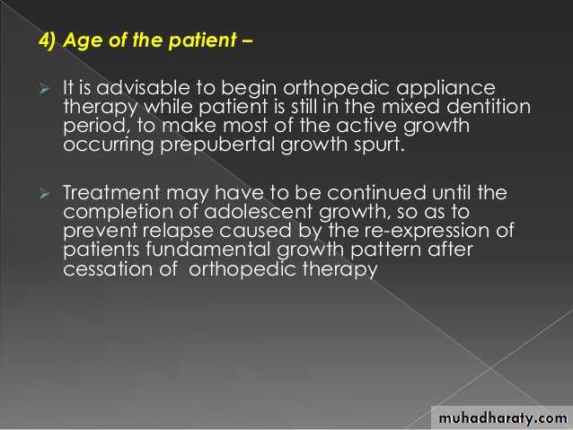 To control the growth of the maxilla in forward and downward directionIdeal patient for treatment with Headgear and facebow