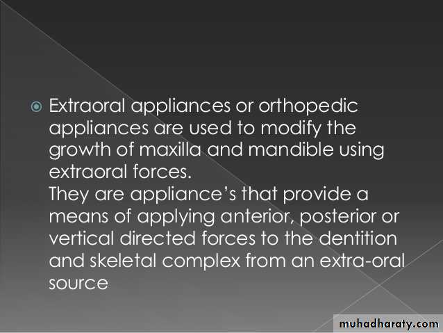 1. extra oral appliances (orthopedic appliances)2. functional appliances