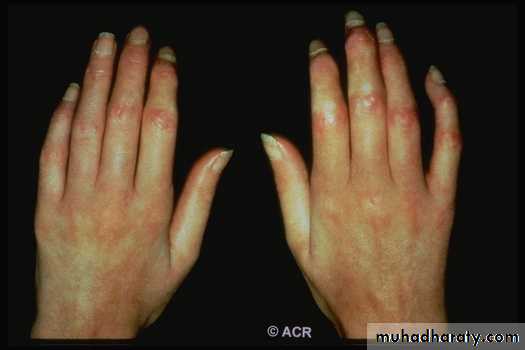 The peak age of onset is the 4th& 5th decades of life with prevalence of 10-20/ million population & 4:1 female :male ratio. It is rare in children.