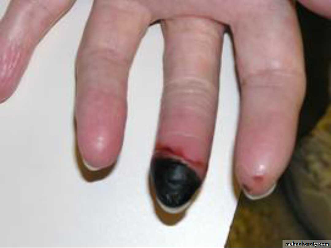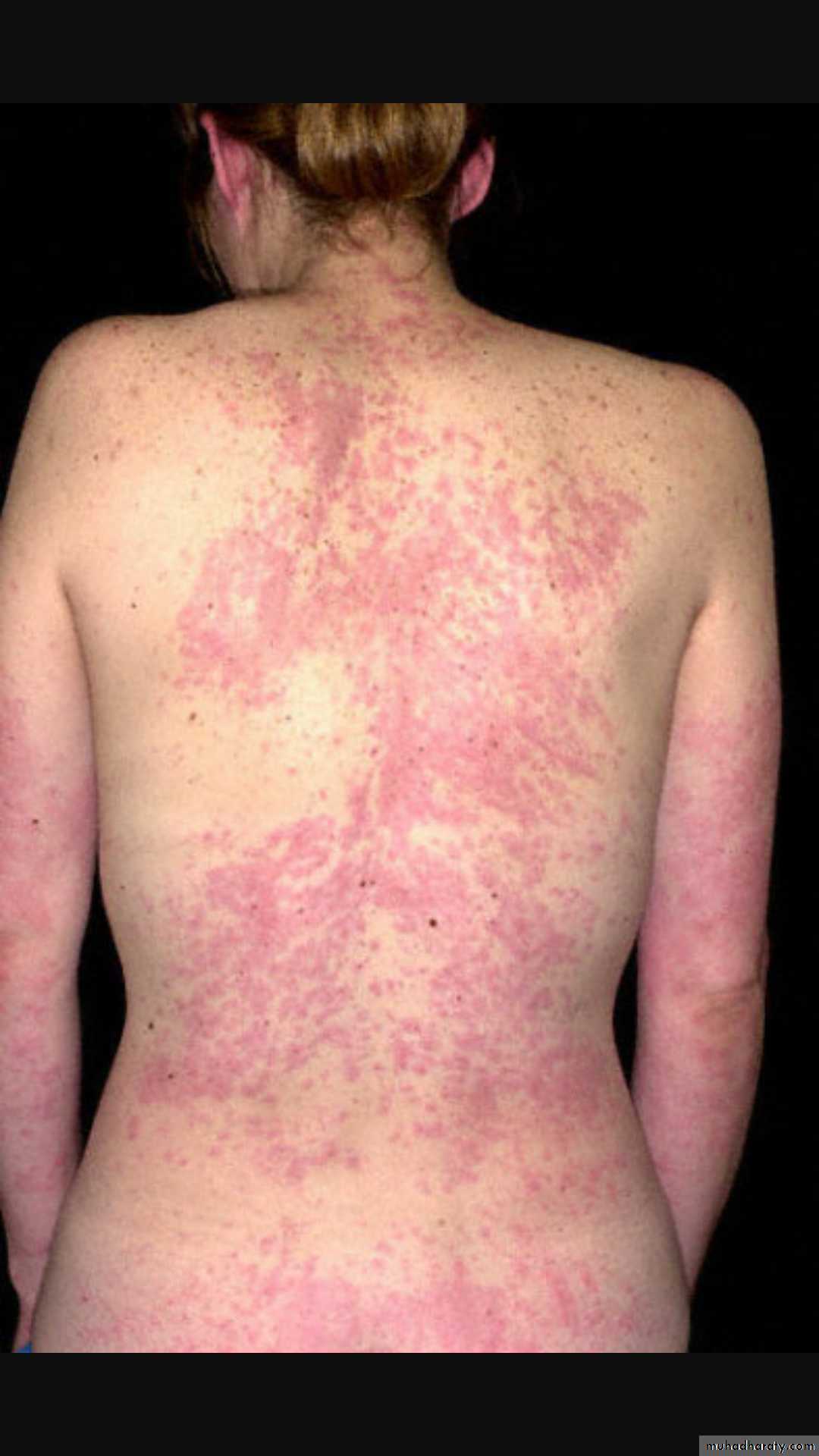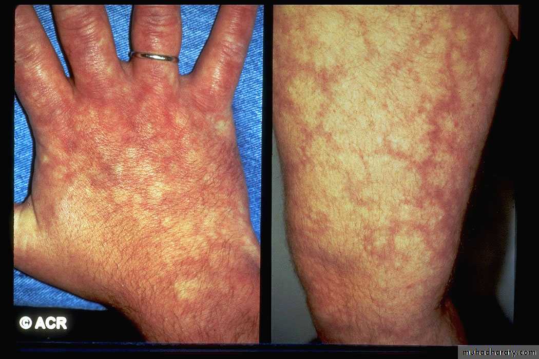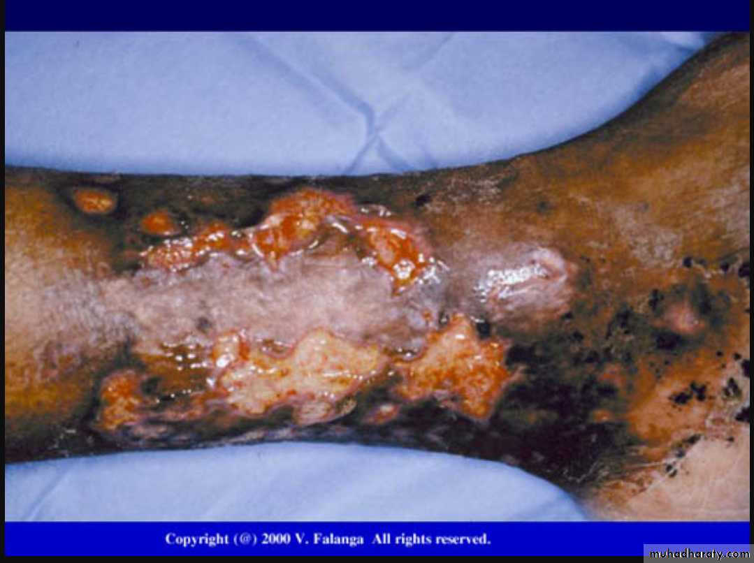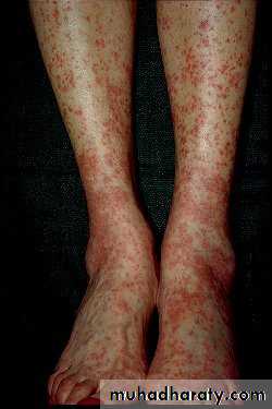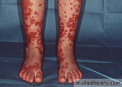 * Skin –subcutaneous hemorrhage and gangrene occur.* Lung involvement is rare.