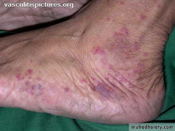 Ddx: drug induced purpura, SLE, gonococcal arthralgia, keratoderma blennorhagica& secondary syphilis.