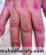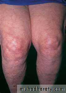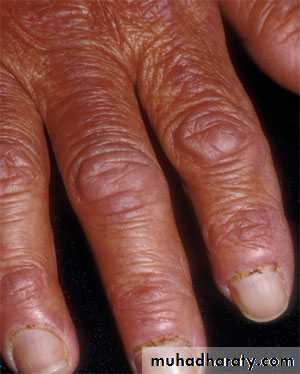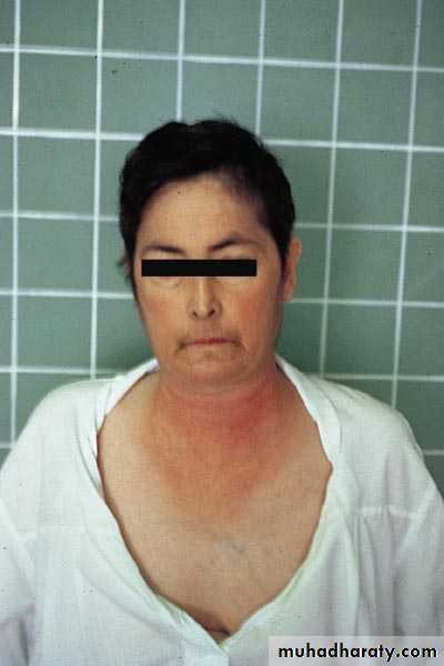 • Group 5: polymyositis(or dermatomyositis) with associated collagen vascular disease.Polymyositis symmetrical proximal muscle weakness usually of the lower extremities first. The patient have difficulty in rising from a chair, climbing stair or lifting. Sometimes associated with muscle pain. The onset is between 40-60 years& is gradual, but can be insidious or explosive.