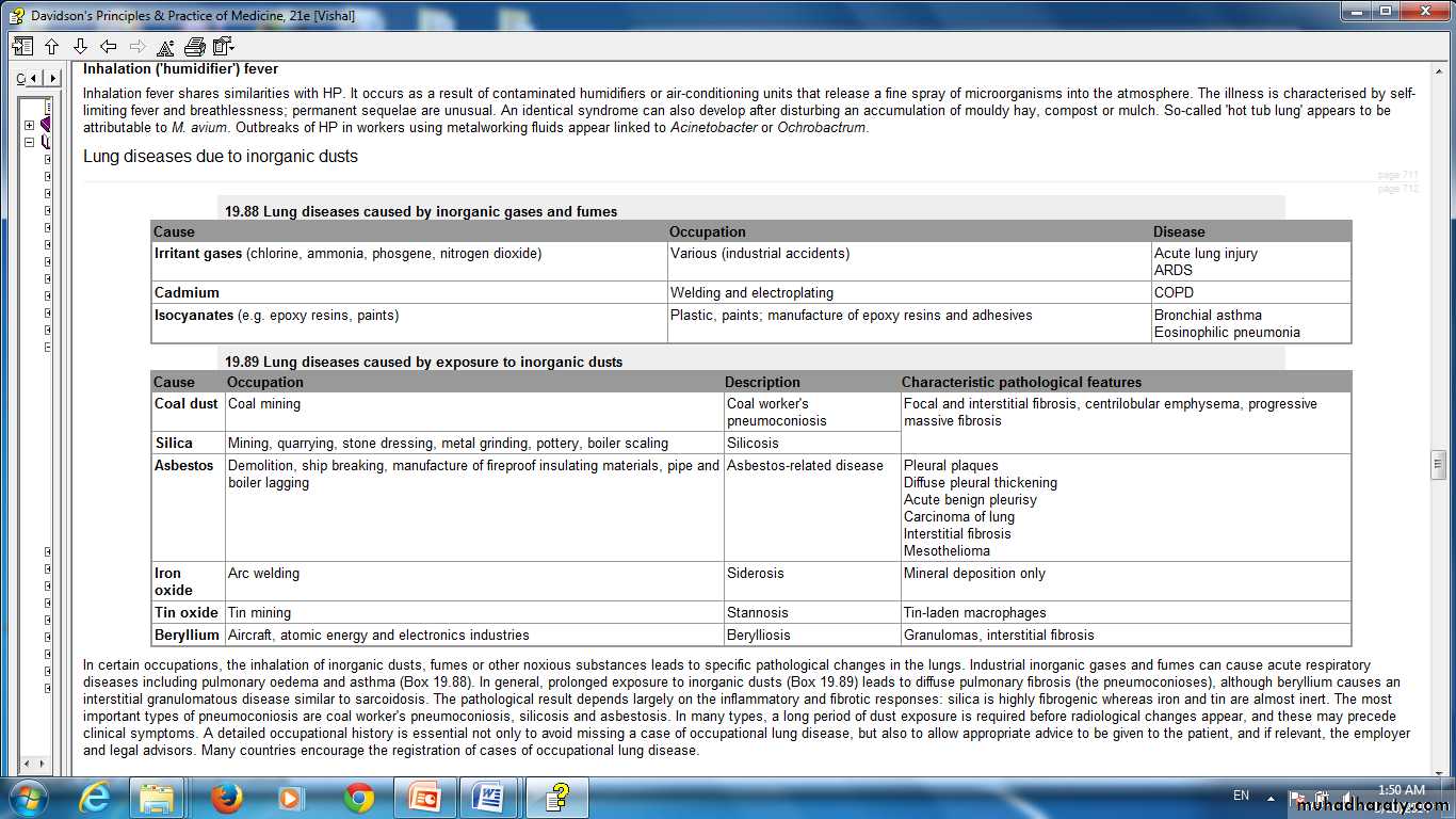 II-Lung diseases due to organic dusts.III-Lung diseases due to inorganic dusts.