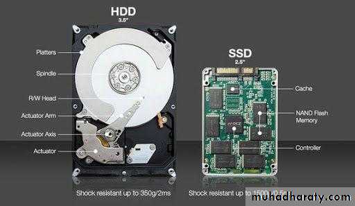 أقراص التخزين من نوع SSDSSD هي اختصار لـ Solid State Drive. يمكن اعتبار أقراص SSD التخزينية نسخة كبيرة الحجم من الفلاش دسك USB وأكثر تعقيداً حيث لا يوجد في هذه الأقراص أو في الفلاش دسك قطع متحركة ويتم حفظ البيانات والملفات في رقاقات صغيرة microchips يوجد في كل نوع من أقراص SSD متحكم Controller يقوم بقراءة وكتابة البيانات وهو الذي يحدد سرعة هذه الأقراص