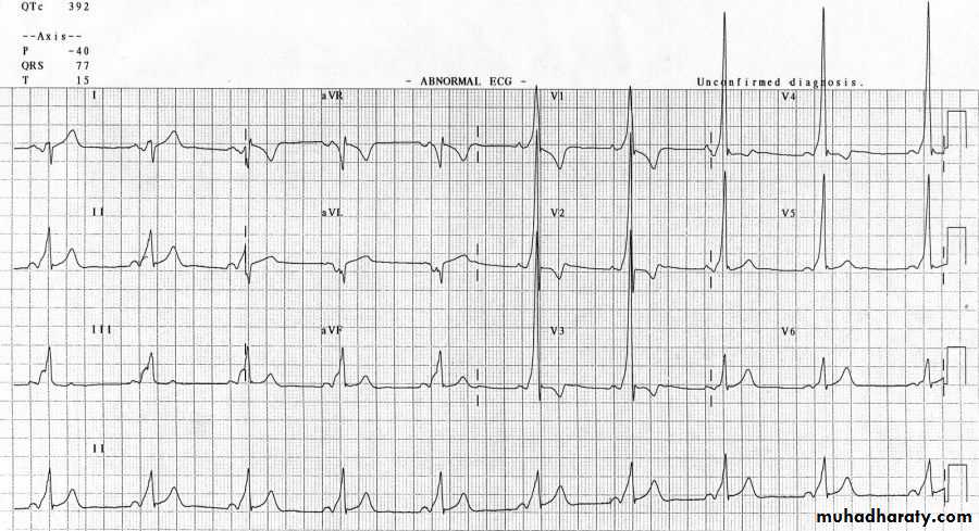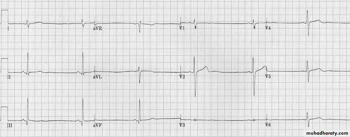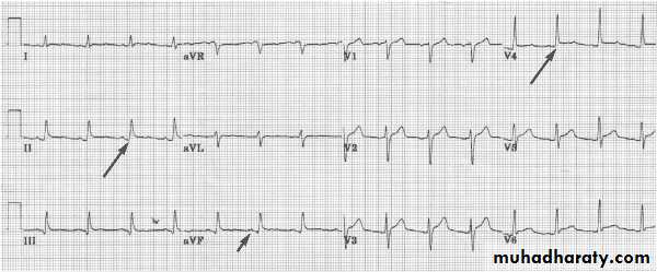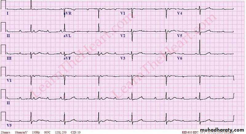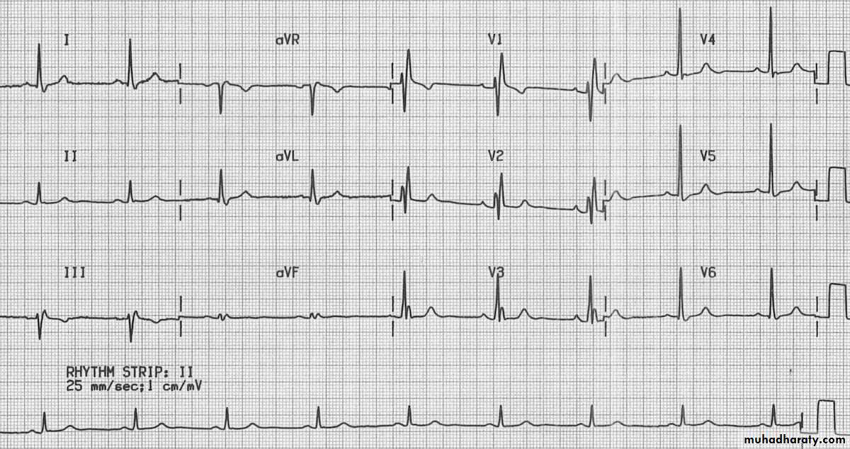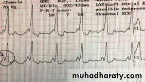 * Causes: ( hypothermia , hypoxia , hyperkalaemia , athletes , drugs such as digitalis and beta blocker , …..)3- Premature atrial contraction ( atrial ectopic beat )