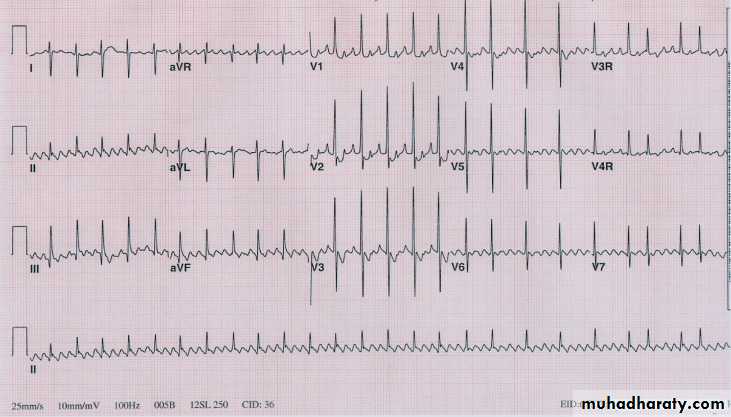 Findings: 1- S-T elevation in V1,V2,V3 and V4