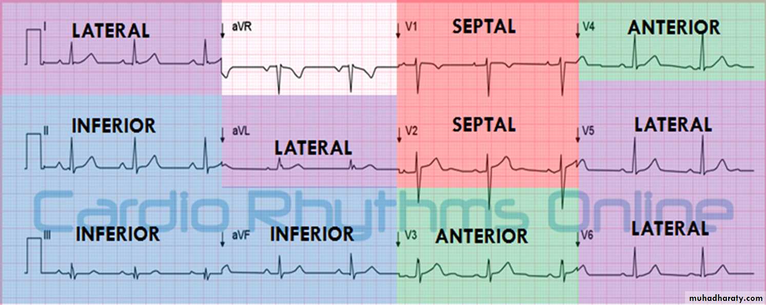 - Leads represent the lateral side of the heart : I , a V L , V5 ,V6- Leads represent the inferior side : II , III , a V F